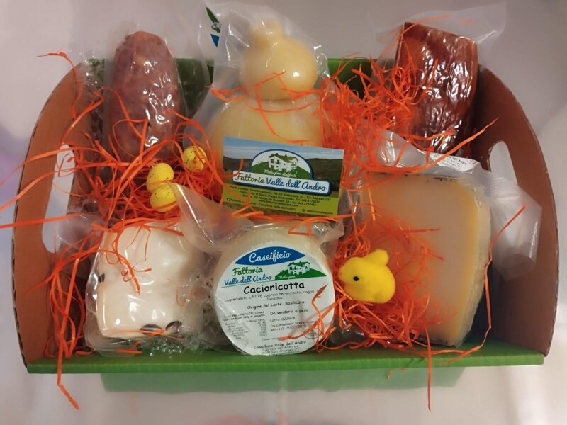 Cesto Pasquale: un'accurata selezione dei nostri migliori prodotti, confezionati con eleganza e cura per garantire il massimo della freschezza, ideali da condividere in famiglia o da regalare ad amici e parenti.